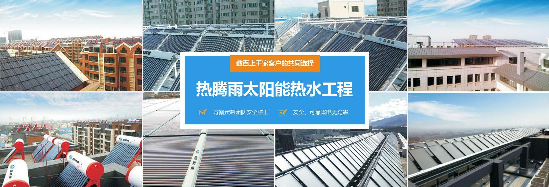 河南熱騰新能源有限公司是一家主要以太陽能熱水器、空氣能熱水器、空氣源采暖熱泵、空氣源熱泵熱水器、烘干熱泵、中央空調、等熱泵相關產品的研發、設計、銷售、安裝于一體的新能源公司。目前已開發出包括家用熱泵、商用熱泵和采暖熱泵在內的10大類、72個系列、420多個品種規格的產品,能充分滿足不同消費群體的需求。公司有多年的太陽能集熱器生產和太陽能熱水工程施工經驗,并和全國多所相關高等院校合作研發新技術,擁有多用途平板式太陽能裝置的制作經驗。公司擁有“熱騰雨”注冊商標。我公司產品廣泛應用于賓館、酒店、洗浴中心、游泳場管、學校、單位、機關、部隊等,深得客戶的認可。